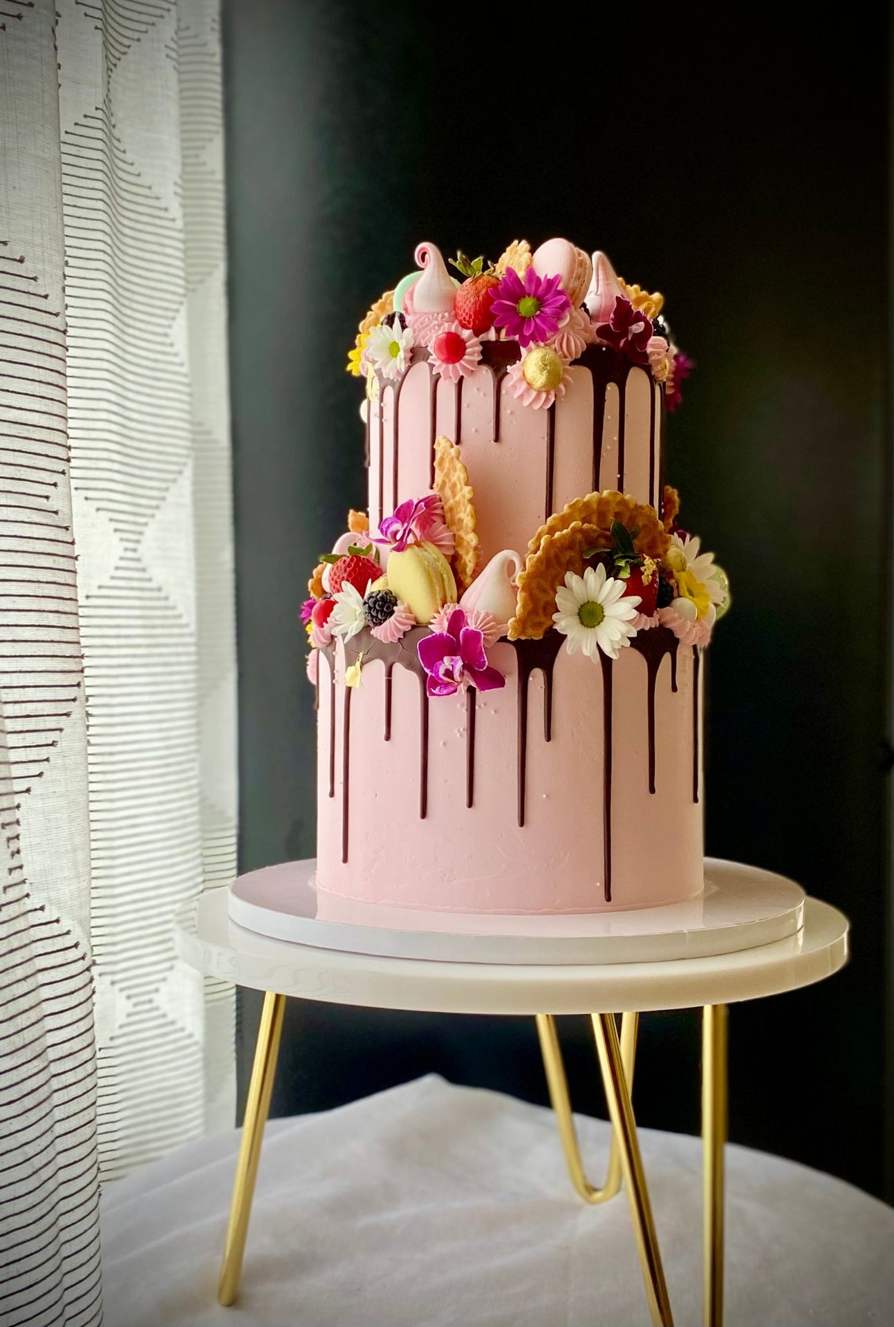 Vanilla cake (with or without sprinkles) with Oreos baked in, Oreo Swiss buttercream, chocolate ganache